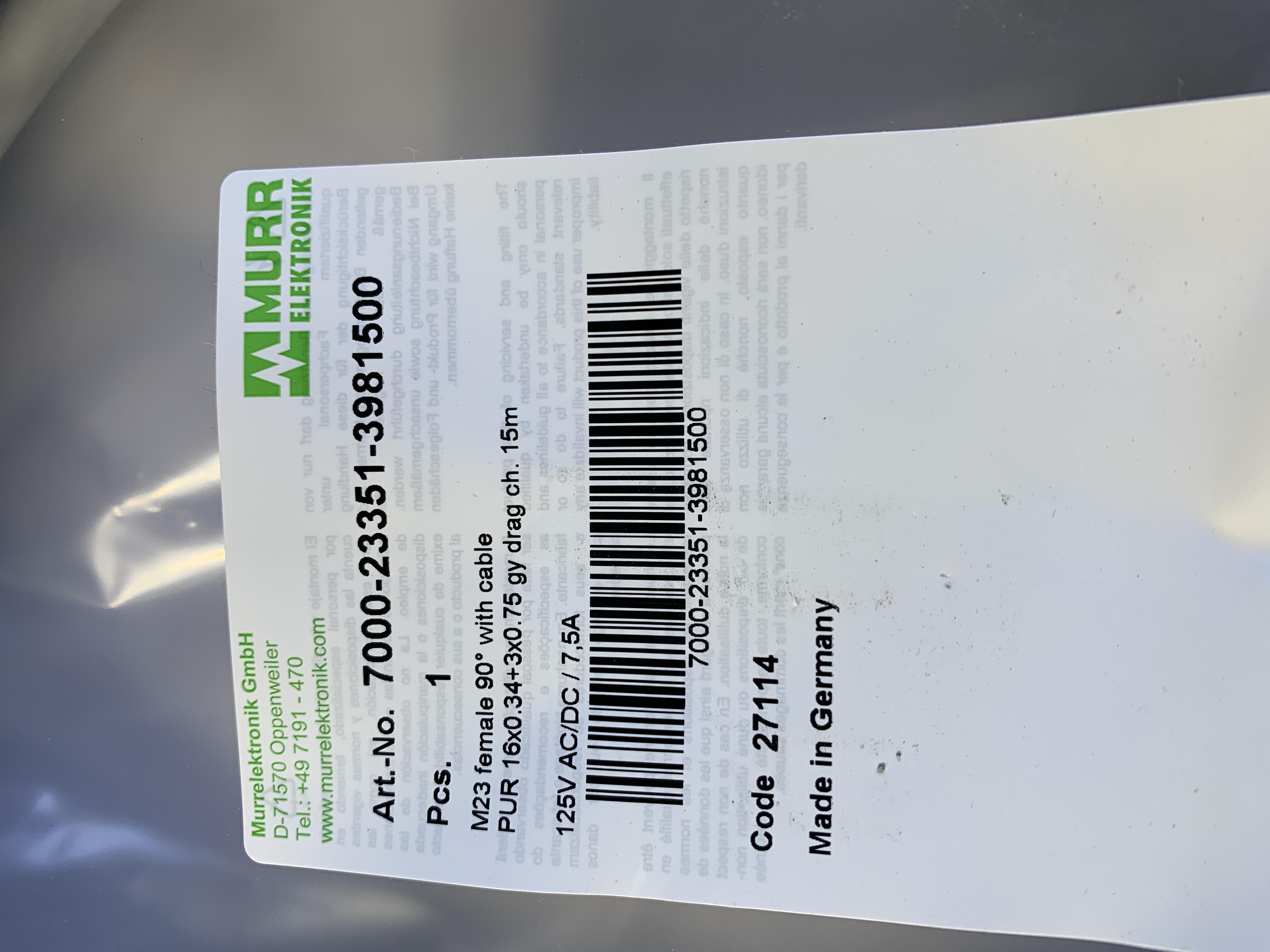 7000-23351-3981500-InStock Kabel 7000-23351-3981500 Murr Elektronik