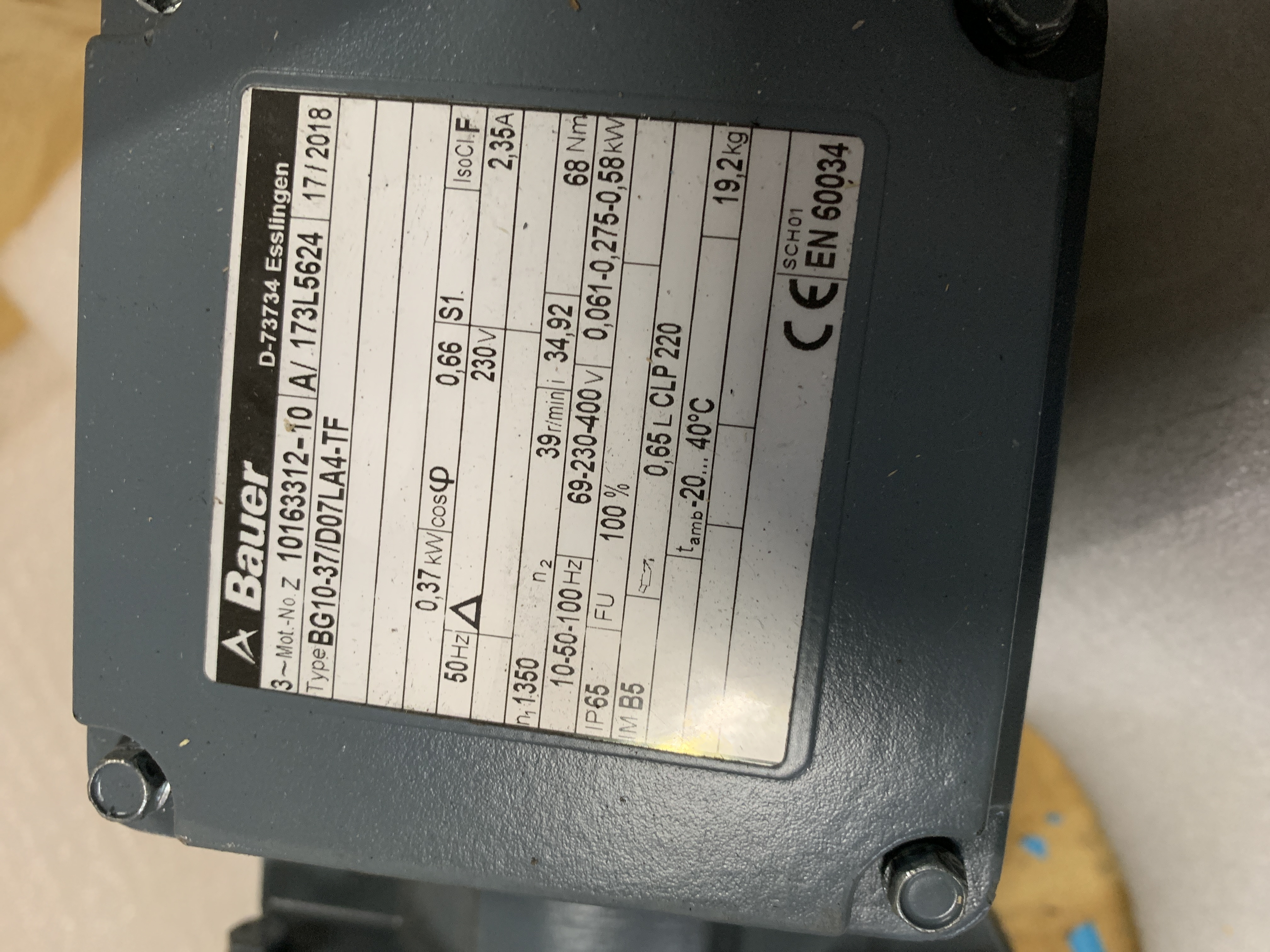 BG10-37/D07LA4-TF-InStock Motor +Reduktor BG10-37/D07LA4-TF Bauer